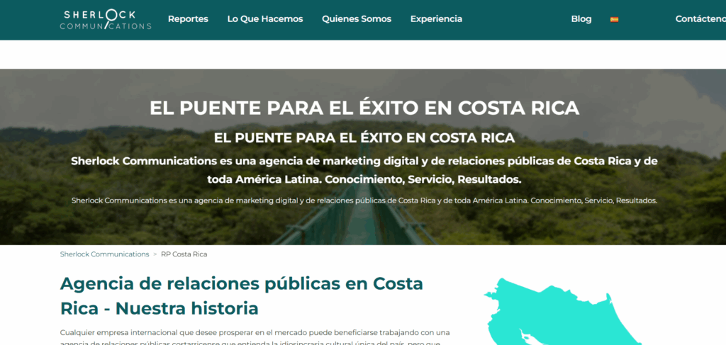 Sherlock Communications es una premiada agencia latinoamericana de relaciones públicas y marketing digital fundada en 2015. La agencia se especializa en apoyar a compañías internacionales que operan en América Latina, incluyendo Costa Rica, buscando cerrar la brecha comercial y cultural entre la región y los mercados extranjeros.