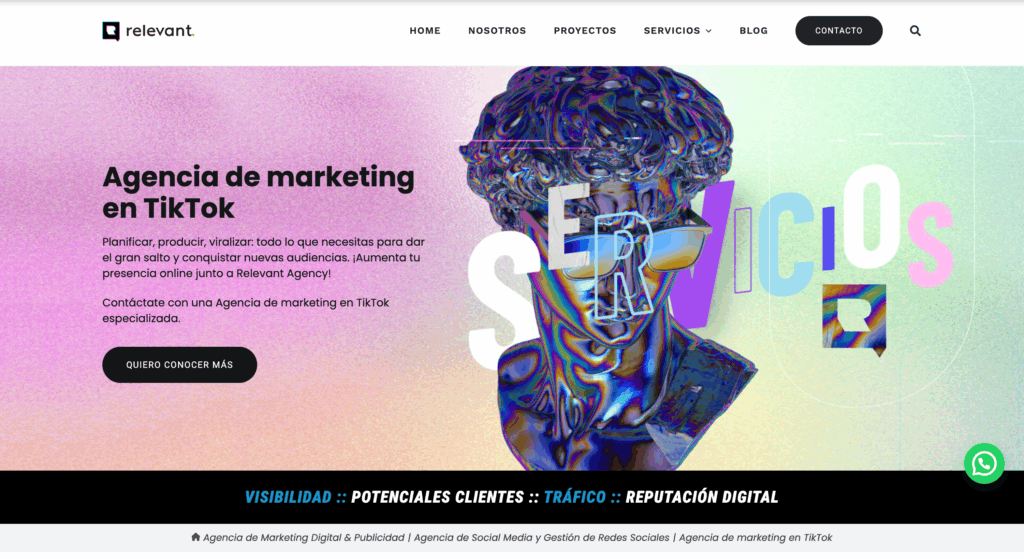 Relevant MKT es una agencia con presencia en múltiples países de LATAM que se especializa en Marketing en TikTok. Se definen como una agencia 100% profesional que busca desbloquear el potencial de las marcas en la plataforma, combinando estrategia, creatividad y diseño audiovisual para crear contenido viral y relevante.