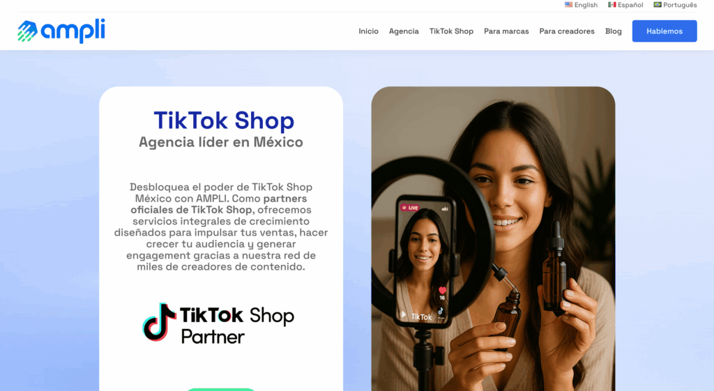 AMPLI es Partner Oficial de TikTok Shop en Ciudad de México. Su misión es desbloquear el potencial de TikTok Shop para sus clientes, ofreciendo servicios integrales de crecimiento enfocados en impulsar las ventas, aumentar la audiencia y generar engagement