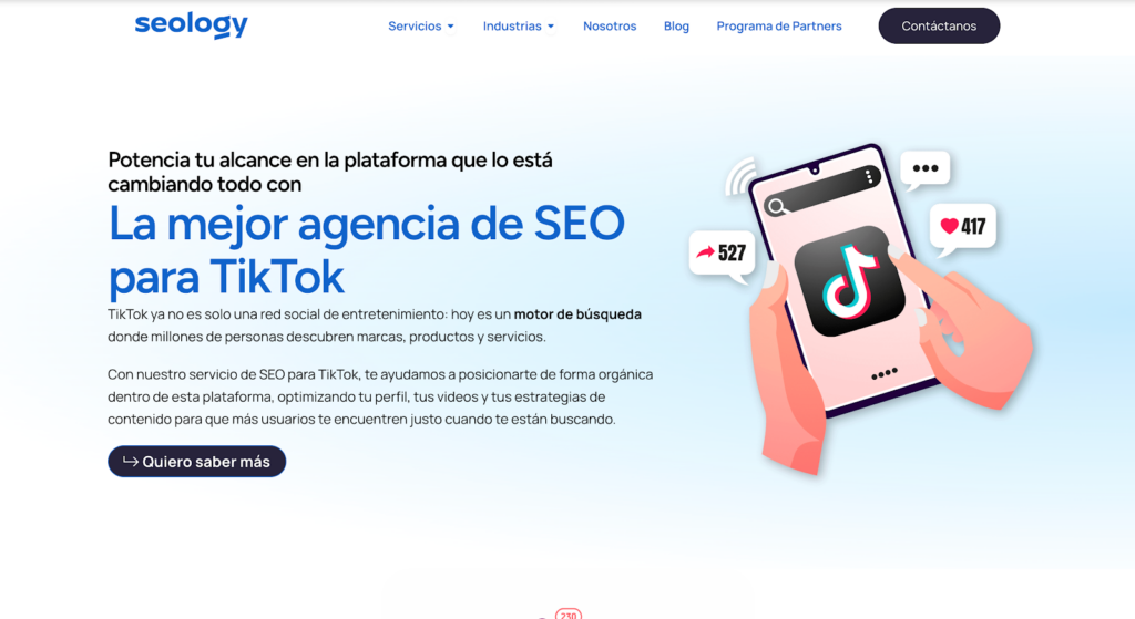 Agencia Seology es una agencia de SEO  que ha adaptado sus servicios a las plataformas sociales. Su objetivo es ayudar a las empresas a posicionarse de forma orgánica en TikTok, reduciendo la dependencia de la pauta publicitaria. Su estrategia combina las reglas del SEO tradicional con el análisis de los nuevos comportamientos de búsqueda en redes sociales.