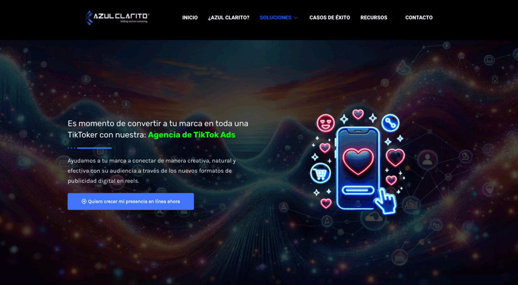 Azul Clarito es una agencia especializada en TikTok Ads en México. Su enfoque principal es el PPC y el Growth Hacking, con el objetivo de maximizar el Retorno de Inversión de sus clientes.