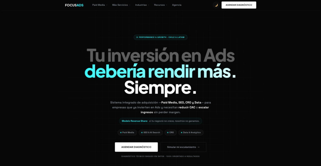 Focus Ads es una de las principales agencias de publicidad digital en Chile orientada a resultados. Si el objetivo principal de tu empresa es generar conversiones a través de publicidad pagada en TikTok, Focus Ads se posiciona como una opción especializada en performance marketing con capacidad para escalar campañas de forma eficiente.
