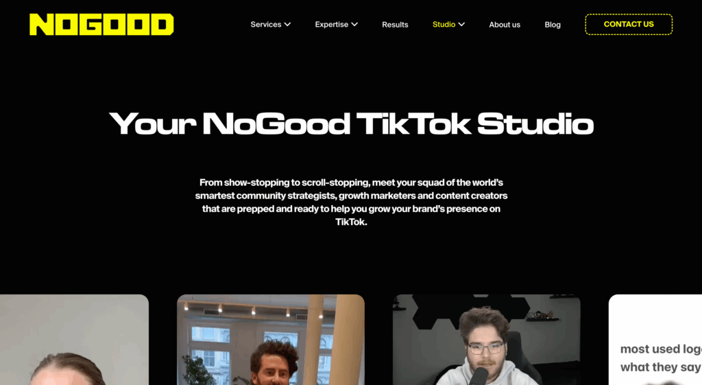 NoGood es una Agencia de Growth Marketing de alto rendimiento, y su división TikTok Studio se presenta como un socio estratégico para el crecimiento de la marca en TikTok. La agencia es un Partner Empresarial Oficial de TikTok, lo que subraya su expertise y relación directa con la plataforma.