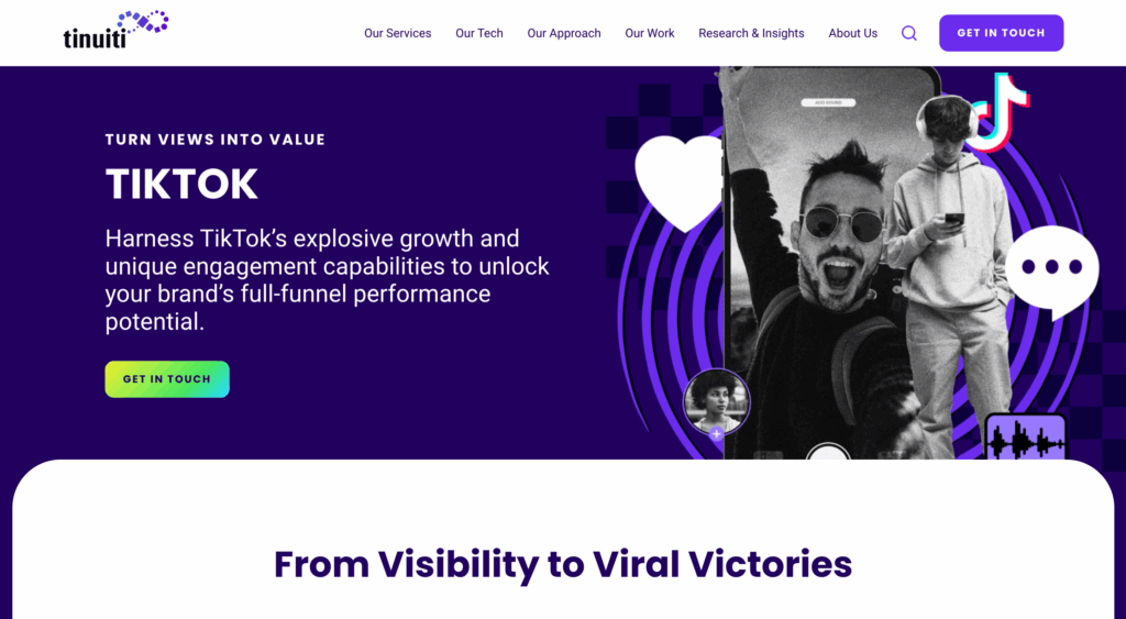 Tinuiti es una agencia Independiente Full-Funnel Performance Marketing, enfocada en transformar las visualizaciones de TikTok en valor y rendimiento para las marcas. La agencia se distingue por combinar estrategias innovadoras, colaboraciones con influencers de alto nivel y un rigor analítico profundo.